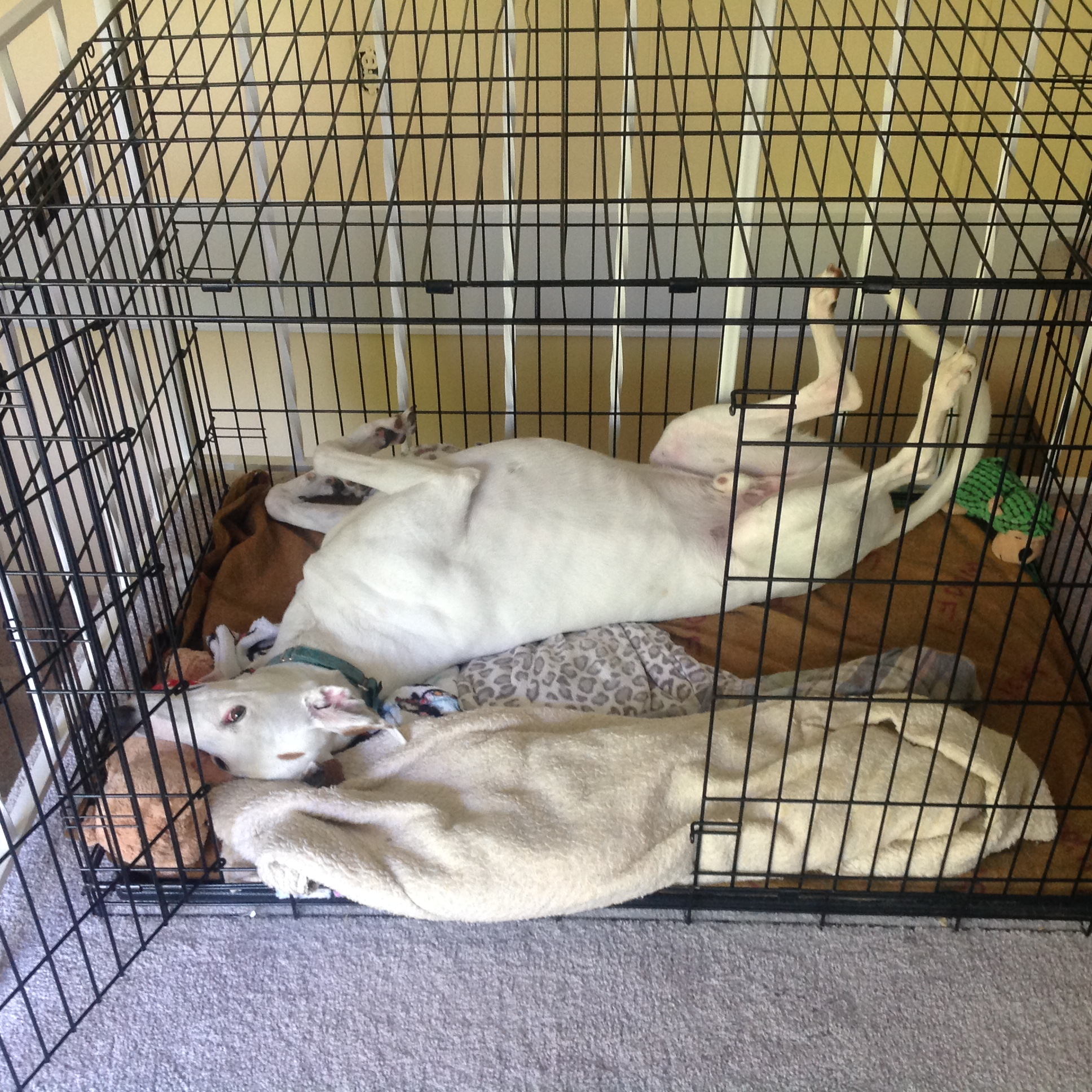 This February, after much cajoling and an astonishingly professional and well-researched PowerPoint, our youngest daughter convinced us that so much undiluted time spent in the company of The Old People might get her down since both sisters are away at college. We caved and allowed her to adopt a rescue greyhound. Trident is striking! He is slender, white, and aristocratically graceful.